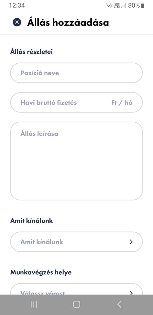 Miután letöltötted a Pozi Business appot, a regisztráció során megadott email címeddel és jelszavaddal tudsz belépni az alkalmazásba. Első lépésként add meg a hirdetésed részleteit: